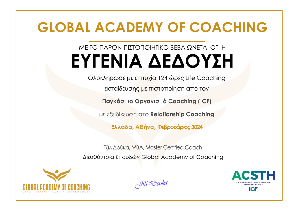Έτσι ξεκίνησα τις σπουδές μου στην Global Academy of Coaching. Εκεί έμαθα πως να υποστηρίζω τους ανθρώπους να κατανοήσουν τον εαυτό τους.